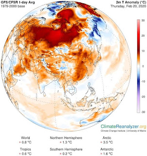 അന്റാർട്ടിക്കയിൽ സാധരണയെക്കാൾ 1.6 ഡിഗ്രി കൂടുതൽ അനുഭവപ്പെട്ടപ്പോൾ ആർട്ടിക്കിൽ 3.5 ഡിഗ്രി കൂടുതൽ..
